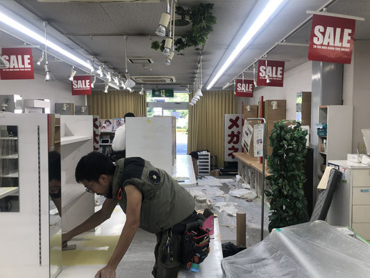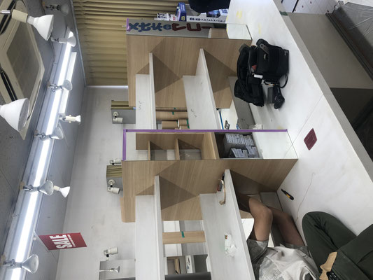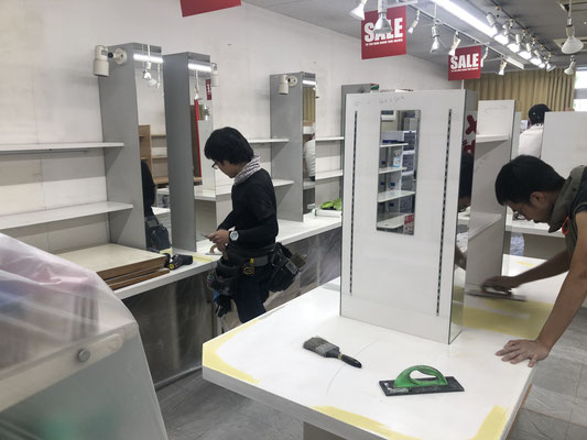 メガネ店様店舗改装(既存什器にダイノックシート貼でイメージチェンジ)