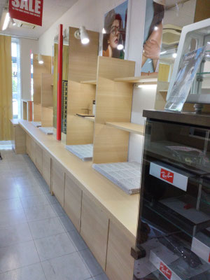 眼鏡店様の什器と看板のリニューアルを行いました。壁紙や床はそのままに、既存什器にダイノックを貼りイメージチェンジ。追加で什器の製作納品も行いました。什器の色合いが変わるだけでも店の雰囲気が随分変わったとご依頼者様に喜んで頂けました。お店内装の全てを改装するにはそれなりにお金がかかります。コストを抑えてイメージチェンジができる什器の更新という手もございます。是非ご参考になさってみてはいかがでしょうか。